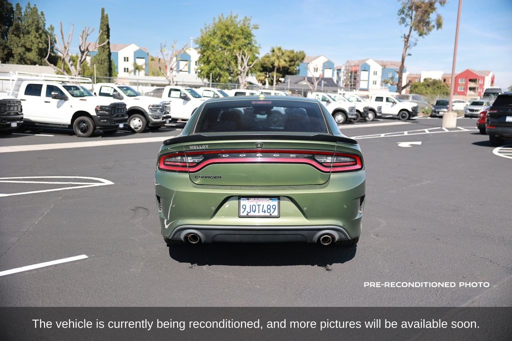 Equipped with the Super Track Pak, this Charger features performance-tuned steering, sport suspension, upgraded brakes, paddle shifters, and distinctive performance styling cues that enhance both handling and driver engagement. The athletic stance is further highlighted by performance wheels, rear spoiler, and signature Dodge design elements that command attention.